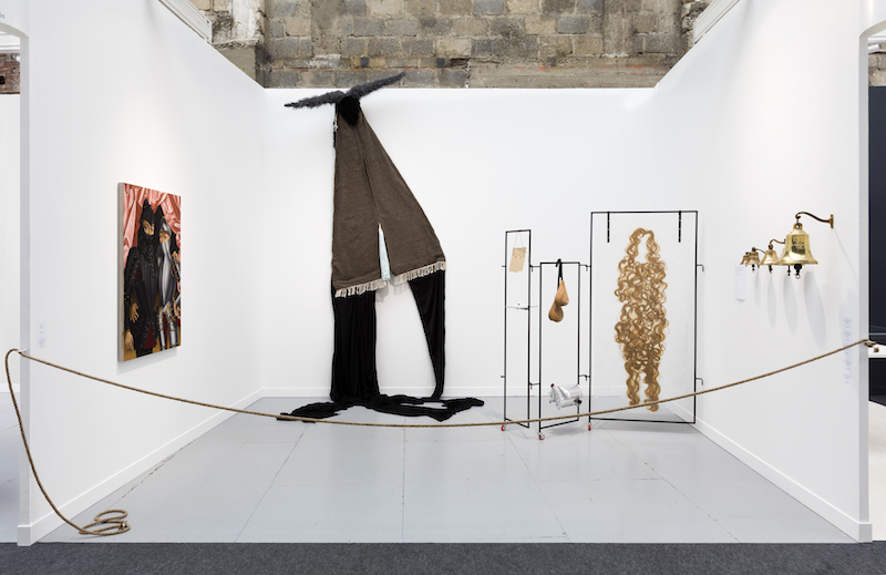 Patrizio Di Massimo, “The Wedding”, 2017, Oil on linen, 120 × 90 × 3.5 cm. Photo: Mark BlowerDavid Horvitz, “Nautical Dusk (II)”, 2017., Bronze bell, engraved text, text on paper, “Nautical Dusk” closing time happening, 18 cm ø 11.5 cm. Engraved Text: “night disappearing into sea disappearing into”. With the work “Nautical Dusk (II)” the event’s normal closing time is changed to the time of each day’s nautical dusk. The time table is changing in relation to location and time. From 19th to 22nd October 2017, the gallery staff left the booth each public day of the fair at the nautical dusk time, instead of the normal closing time of the fair.