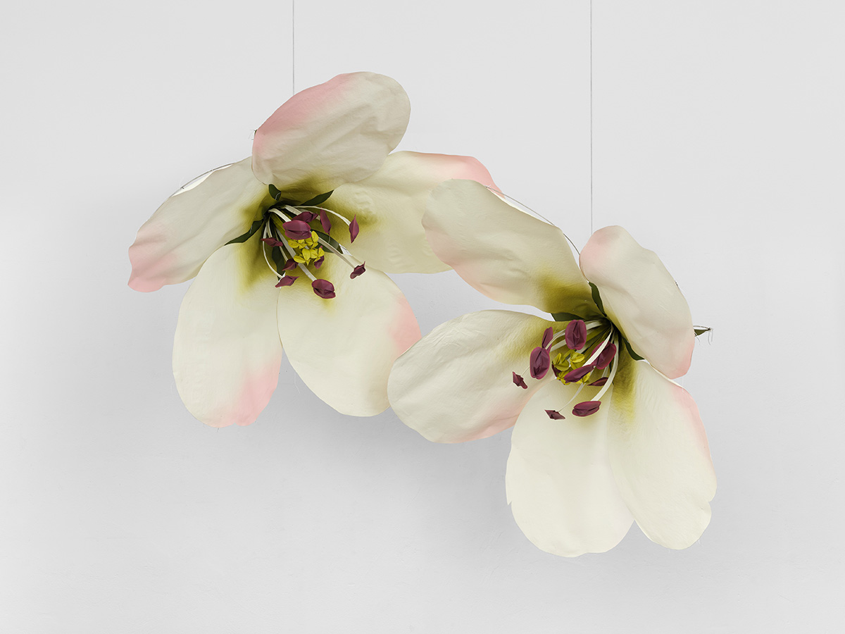 Petrit Halilaj, Álvaro Urbano, 20th October 2020 (Pear), 2025; Stainless steel, canvas, acrylic paint, thread; 2 elements, each: 170 × 170 × 110 cm. Photo by Marjorie Brunet Plaza