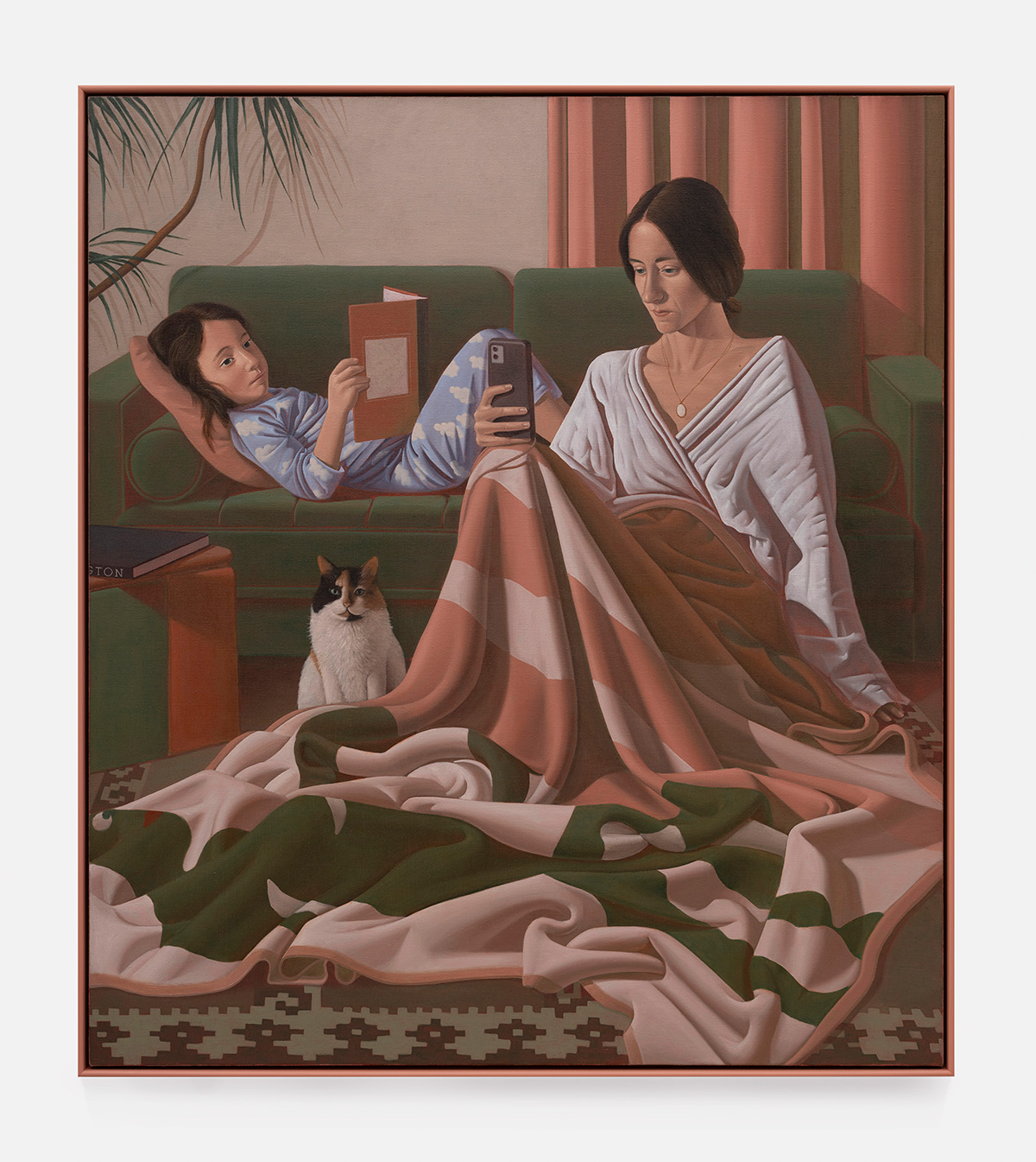 Tyra Tingleff, I would agree with you, but then we both would be wrong., 2025; Oil on raw linen; 170 × 120 × 2 cm; 172 × 122 × 5 cm (framed). Photo by Giorgia Palmisano MBP