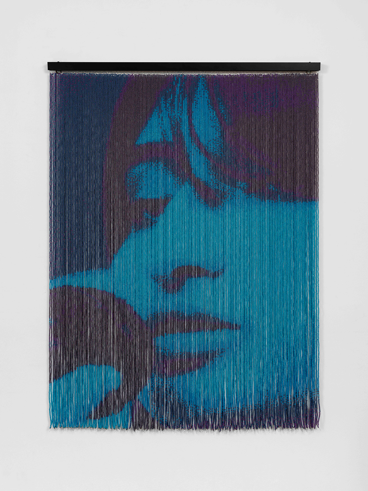 Stephanie Comilang, Talent, 2025; Beaded curtain; 166 × 121 × 3.5 cm. Photo by Marjorie Brunet Plaza